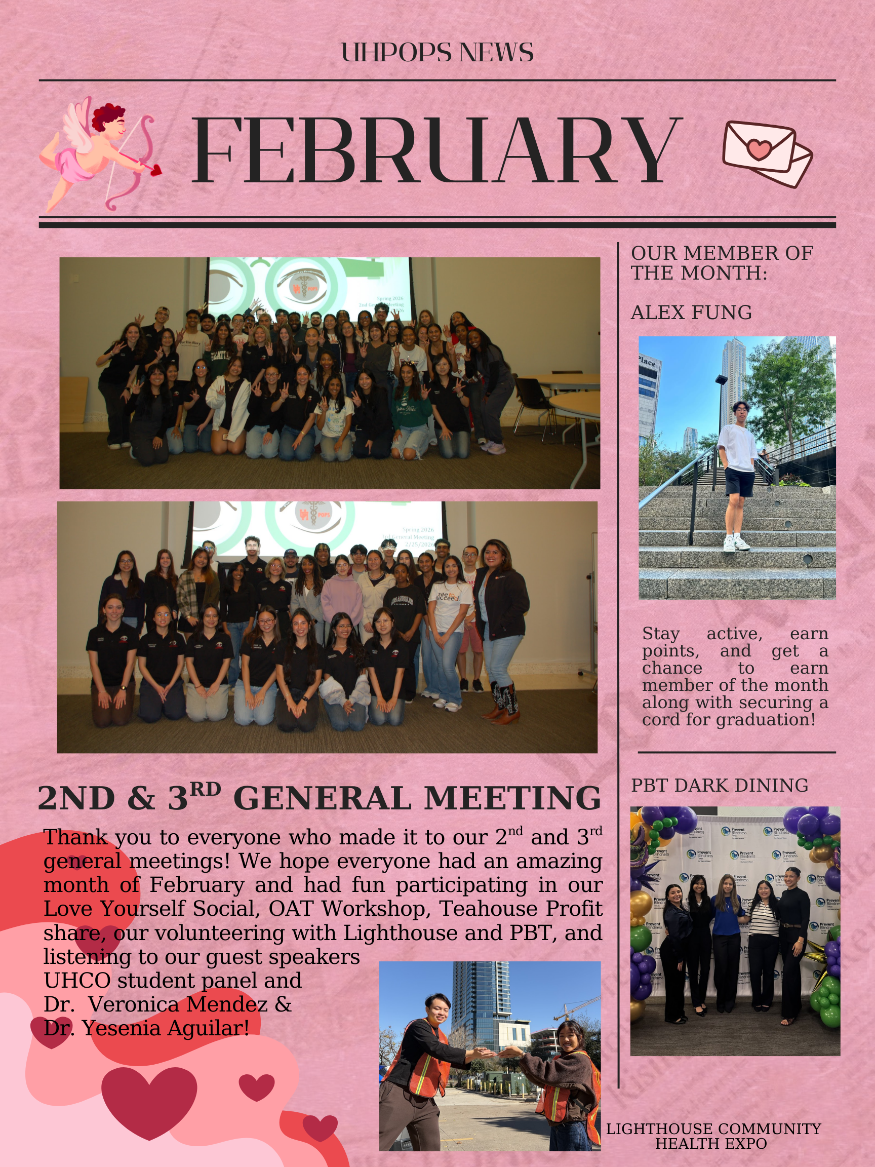Check our events page to see all our volunteer opportunities we have in UHPOPS! Every semester we hold a main volunteering event where all officers and members attend along with smaller ones like foodbanks and holiday events with The Lighthouse of Houston.